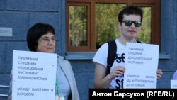 На входе в здание городского совета депутатов встречал пикет, организованный гражданскими активистами, которые были против упразднения процедуры публичных слушаний. "Есть конкретное строительное лобби, которое хочет максимально убрать все обсуждения из публичного пространства, сделать сговоры менее заметными и установить кулуарность как принцип принятия решений. Слушания были неудобны для властей, были многочисленные случаи, когда какая-то проблема выходила на свет именно на публичных слушаниях. И более того, удавалось получать ответы, которые путем переписки можно ждать крайне долго", – сообщил корреспонденту “Сибирь.Реалий” один из участников пикета, заместитель председателя региональной организации партии “Яблоко” Дмитрий Холявченко.