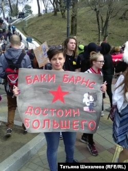 В Красноярске на монстрацию пришло около 50 человек. На входе у участников проверяли надписи на плакатах сотрудники полиции. Если плакат их не устраивал – просили его убрать, сообщает корреспондент "Сибирь.Реалий".