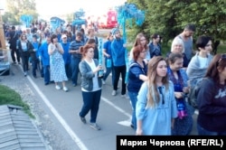 В выходной день в центре Иркутска состоялось перформанс-шествие под названием "Синий лес". Его устроили театр-студия "О!", где занимаются дети и взрослые с особенностями развития, и участники общественной организации родителей детей с ограниченными возможностями "Радуга".