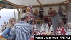 В это время на "Обрядовой поляне" шли свои мастер-классы. Тут можно было, например, вспомнить о старинных народных играх и самим в них поучаствовать.