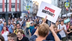 Кроме того, горожане скандируют лозунги. Все, с кем удалось поговорить, рассказывают, что выступают в поддержку независимых кандидатов на выборах в Мосгордуму и требуют освобождение задержанных на акциях протеста в столице.