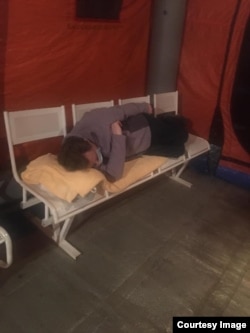 – Это ненормально, что больные люди проводят там ночи ожидания. В этой палатке днем до 17 человек было, многие ночуют на железных скамьях, – говорит Ирина. – По закону, если людей привезли в больницу, то обязаны обеспечить им медицинскую помощь, а не держать в тяжелых условиях, по сути, на улице, без всякой помощи. Если бы эта палатка была хотя бы оборудована как госпиталь, то это другой разговор, но там же ничего нет. Это не врачи виноваты. Врачи там работают и падают с ног.