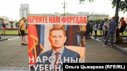 – У меня другого руководства нет. Пусть вернут нам Сергея Ивановича, пусть он продолжает работать. Я за него не голосовал, сто лет на выборы не хожу. Но сейчас я вышел за него, и буду выходить за него, – говорит Артем Демченко, он несет плакат "Я/Мы Фургал". – А Фургал как кость в горле застрял у Москвы. У него же рейтинг выше, чем у Путина. Он много работал, посрезал чиновникам зарплату, накрыл коррупционные схемы. А то, что он бизнесмен, – да все это знают. Каких-то бизнесменов он якобы убил? Да в 2004 году бандиты только были, а не бизнесмены, и я ему верю, что он не убивал никого. Про нового, Дегтярева, толком не знаю ничего. Но слышал что-то, мол, он нас дубинками будет разгонять. Ага, посмотрю я, как он будет нас разгонять. Мне кажется, ему уже чемодан обратно пора собирать.