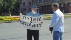 Здесь же проходит одиночный пикет солидарности и за отставку президента Путина проводит активист Виктор Рау, который держит в руках плакат с надписями "Путина в отставку!" и "ЯМы Хабаровск". Неподалеку от него, также на площади, ведут сбор подписей приглашенные Рау волонтеры. Пикетирование идет неподалеку от дороги, проезжающие машины часто сигналят в знак одобрения. Полиция пока не вмешивается и не пытается препятствовать акции.