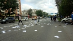Тем временем в Хабаровске неизвестные забросили пачку листовок в колонну протестующих. Люди посчитали лозунги на них экстремистскими и спешно собирают бумагу, чтобы выбросить ее в мусор.