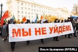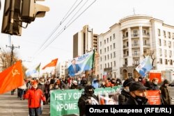 – Да он сам себя боится. А нам он тут никому не нужен. Мы мирные люди. Можем, конечно, быть суровыми дальневосточниками. Но протестуем мирно, ничего не громим, как он себе навоображал. Может, он просто сам и верит в то, что мы "горлопаны" и идем тут все крушить? – добавляет другой участник протестного шествия Андрей.
