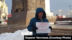 Кирилл Чистяков провёл пикет в центре Владивостока. Он держал плакат "Свободу Алексею Навальному!". По его словам, еще несколько активистов находились в стороне, поскольку сейчас очередь на одиночный пикет считается по новому закону массовым мероприятием, требующим разрешения.