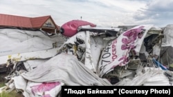 За три года поляна на противоположном от села Казачинского берегу реки Киренги могла зарасти лесом. Он бы скрыл все следы авиакатастрофы: в сентябре 2021 года здесь разбился самолет L-410. Но люди не убрали за собой. Среди сломанных деревьев до сих пор лежат куски винта, дерматиновые накидки на пассажирские кресла, кислородные маски, инструкции по безопасности авиакомпании "Сила" и вещи пассажиров – смятый термос с гербом России, кроссовки и мужские туфли.