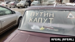 На заднем стекле автомобиля ученого из новосибирского Академгородка Игоря Просанова – надпись крупными буквами: "Путин капут". Из-за нее на Просанова нападали, спускали колеса, забирали в полицию. Полицейские и "люди в штатском", подкараулившие недавно его с женой, требовали стереть надпись. А он упорно отказывается сделать это.