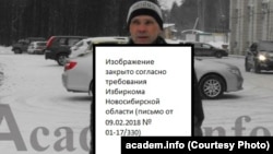 Областная избирательная комиссия Новосибирской области потребовала от местного издания “Академия новостей” удалить фотографию пикетчика в жилете с надписями "Путин – беда России" и "Путин – плохой президент".