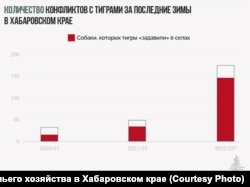 В результате с ноября 2022 года голодные хищники едва ли не каждый день приходят в села. По вечерам, а в последнее время даже днем они заходят во дворы и снимают с цепей собак, поедают в загонах домашний скот. В некоторых школах Хабаровского края детей перевели на дистанционное обучение. Возможности самостоятельно защитить себя жители сел лишены: человеку, который убьет краснокнижного зверя и не сумеет доказать, что это была самооборона, грозит наказание – лишение свободы на срок до четырех лет или штраф до одного миллиона рублей.