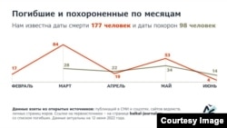 Судя по опубликованным данным, с 24 февраля по 12 июня в Украине погибло 184 военных, которые родились или служили в Бурятии. О дате и месте похорон сообщают в каждом втором некрологе. Часто родственники оповещают знакомых и друзей самостоятельно.